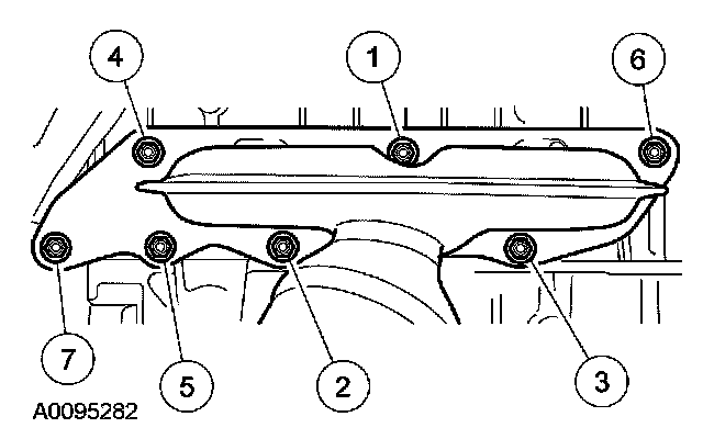 CAUTION: Failure to tighten the catalytic converter manifold nuts to specification a second time will cause the converter to develop an exhaust leak.
