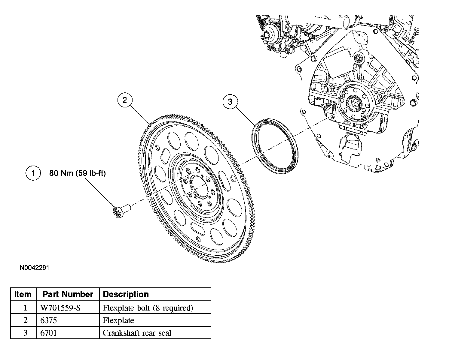 Lower End Components - Exploded View, Flexplate and Crankshaft Rear Seal