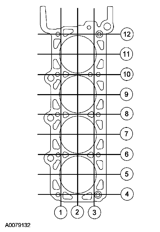 Using a straight edge and a feeler gauge, inspect the cylinder head for flatness in the sequence shown. If the cylinder head is distorted, install a new cylinder head.