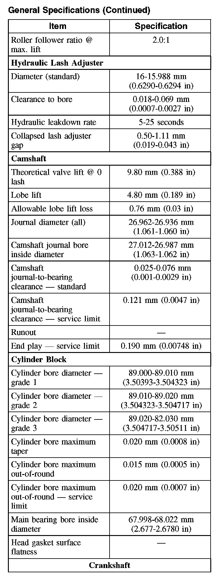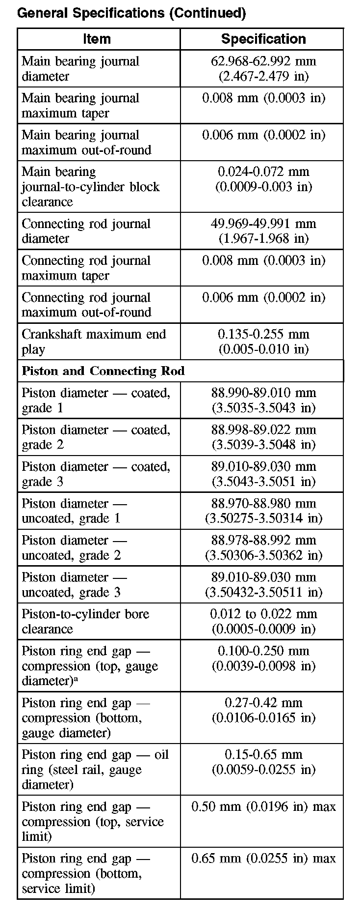 General Specifications