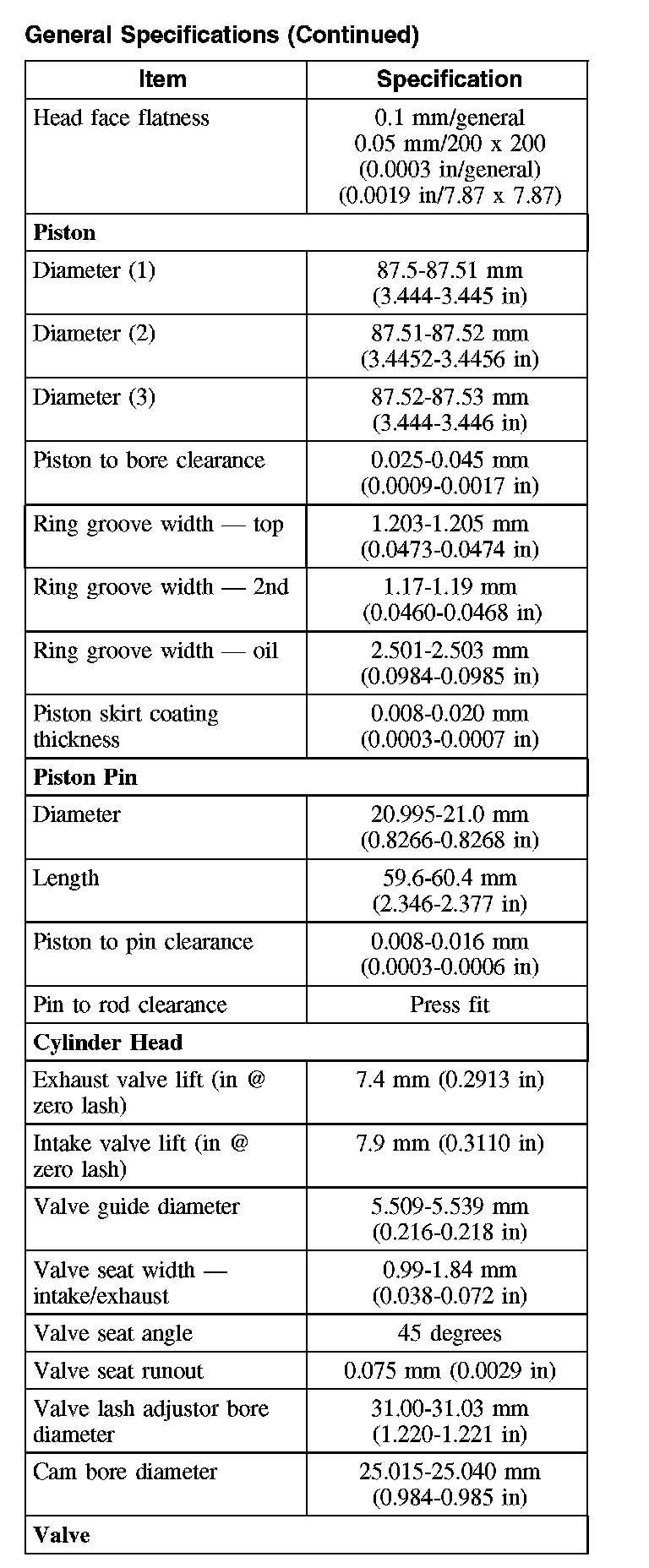 General Specifications