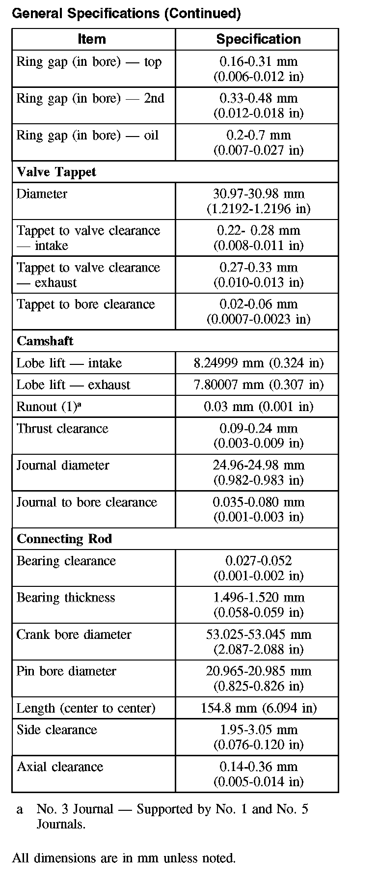 General Specifications:
