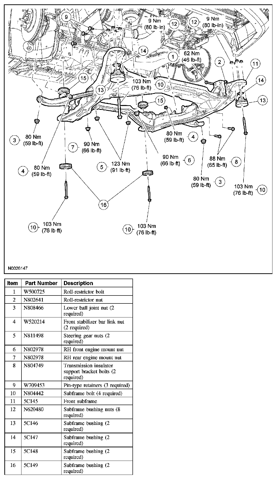 22. NOTE: When installing the subframe bolts, tighten in sequence starting with the LH front, the RH front, and both rear bolts.