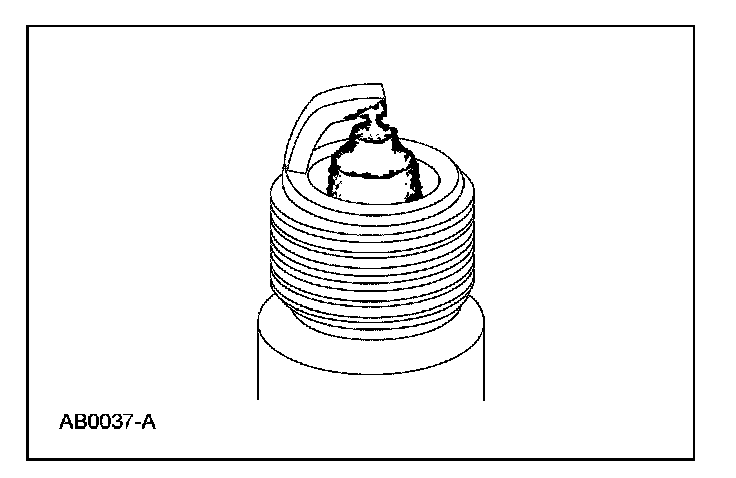 5. Inspect for pre-ignition, identified by melted electrodes and a possibly damaged insulator. Metallic deposits on the insulator indicate engine damage. This may be caused by incorrect ignition timing, wrong type of fuel or the unauthorized installation of a heli-coil insert in place of the spark plug threads.