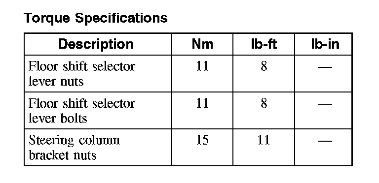 Torque Specifications (Part 1):