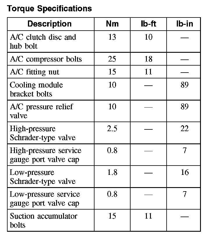 Torque Specifications: