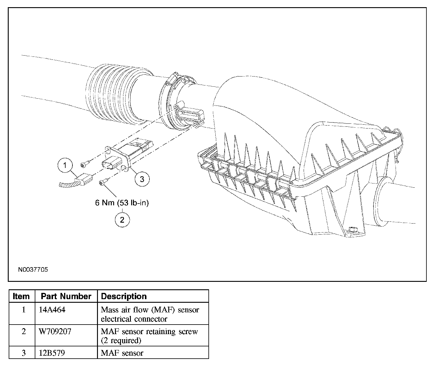 1. Disconnect the mass air flow (MAF) sensor electrical connector.