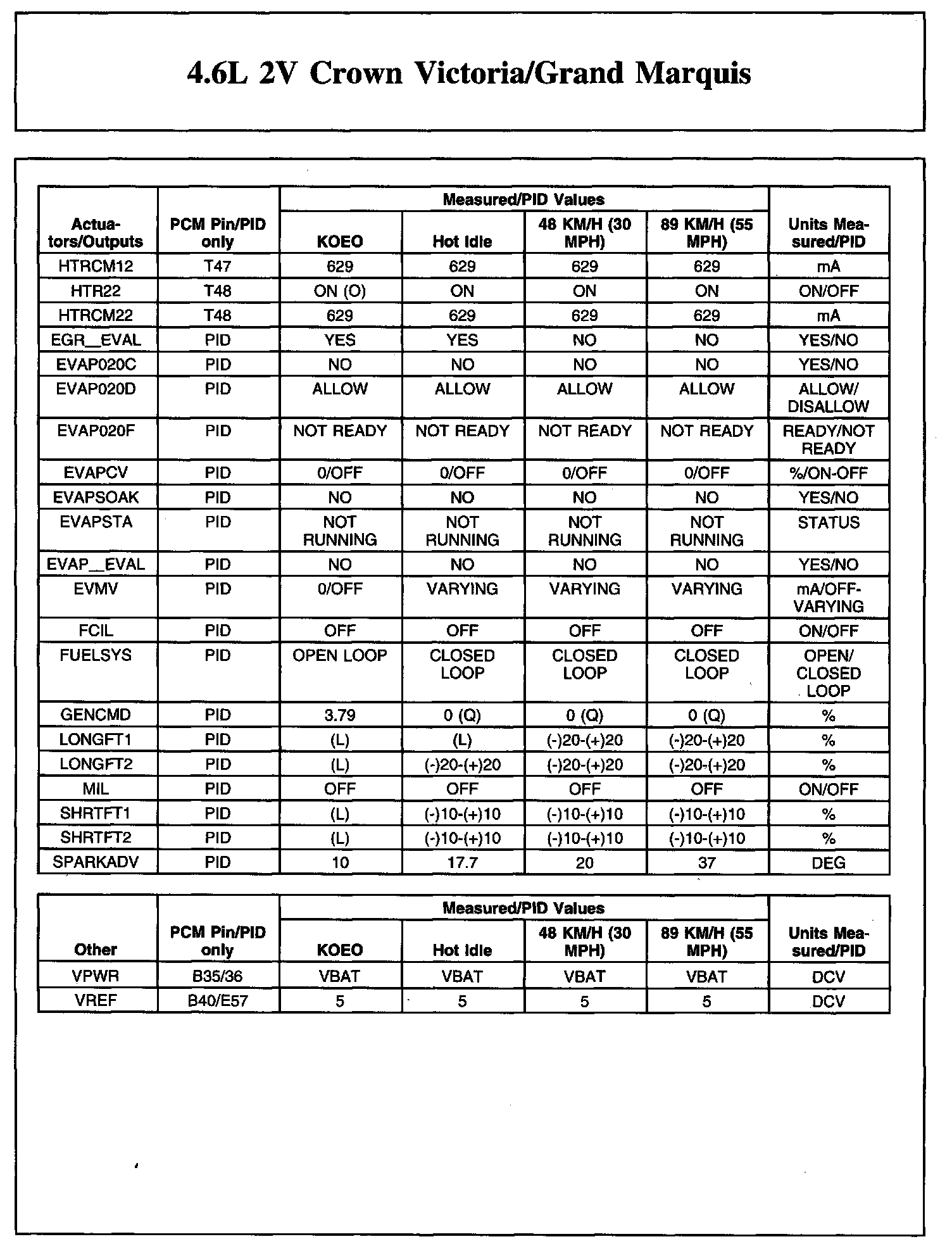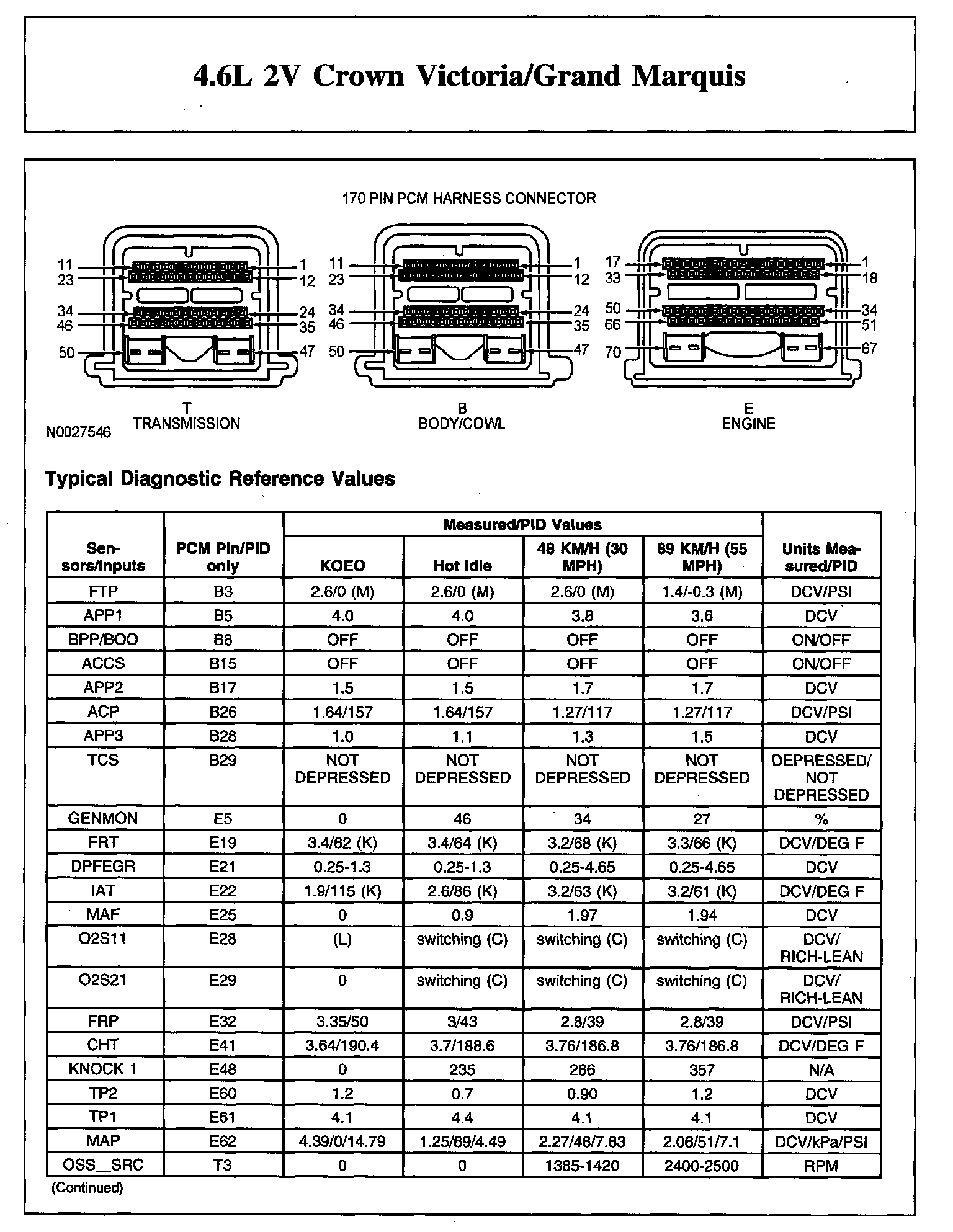 TYPICAL DIAGNOSTIC REFERENCE VALUES4.6L 2V Crown Victoria/Grand Marquis (Part 1):