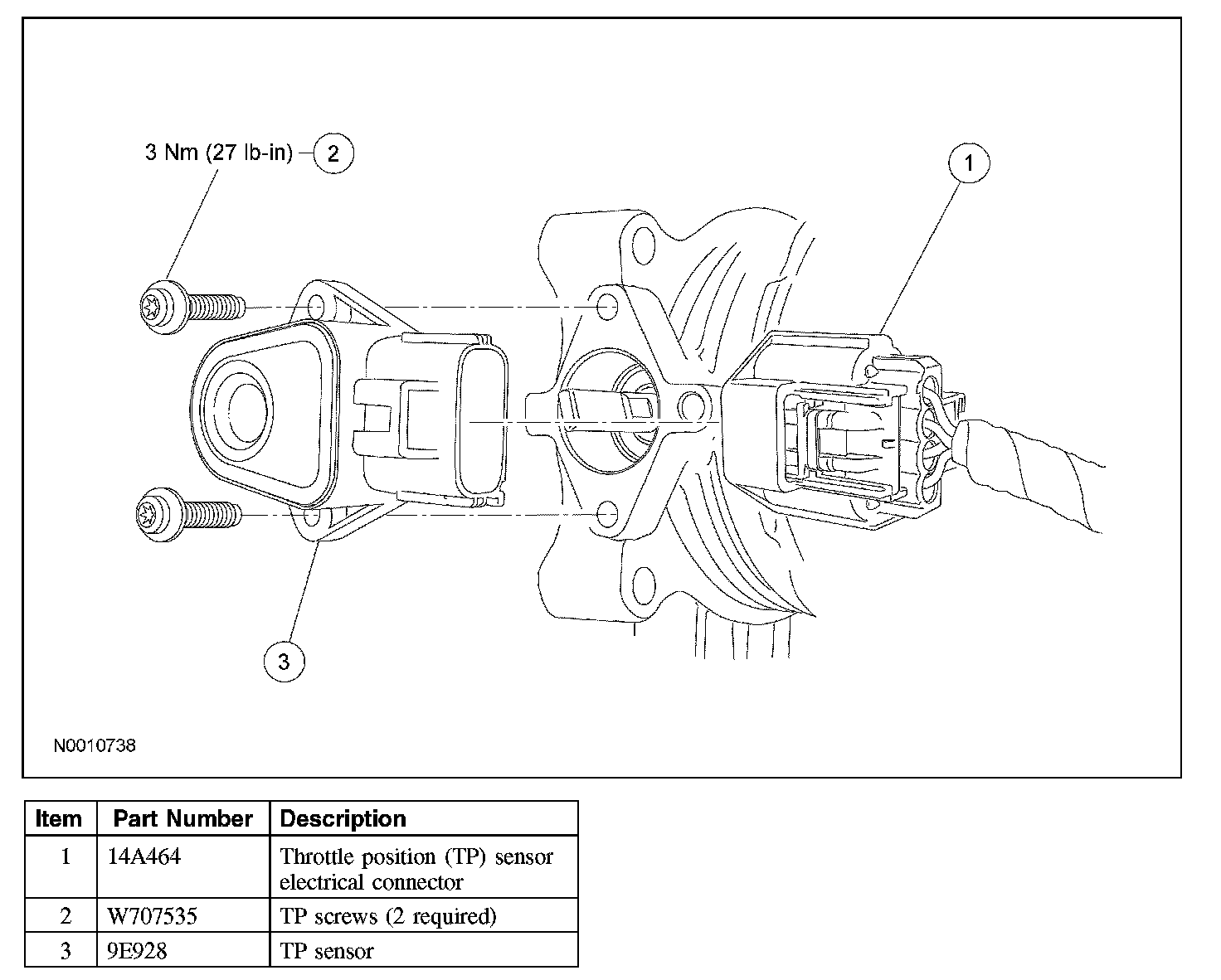 - When installing the new TP sensor, make sure that the radial locator tab on the TP sensor is aligned with the radial locator hole on the throttle body.