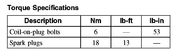 Torque Specifications: