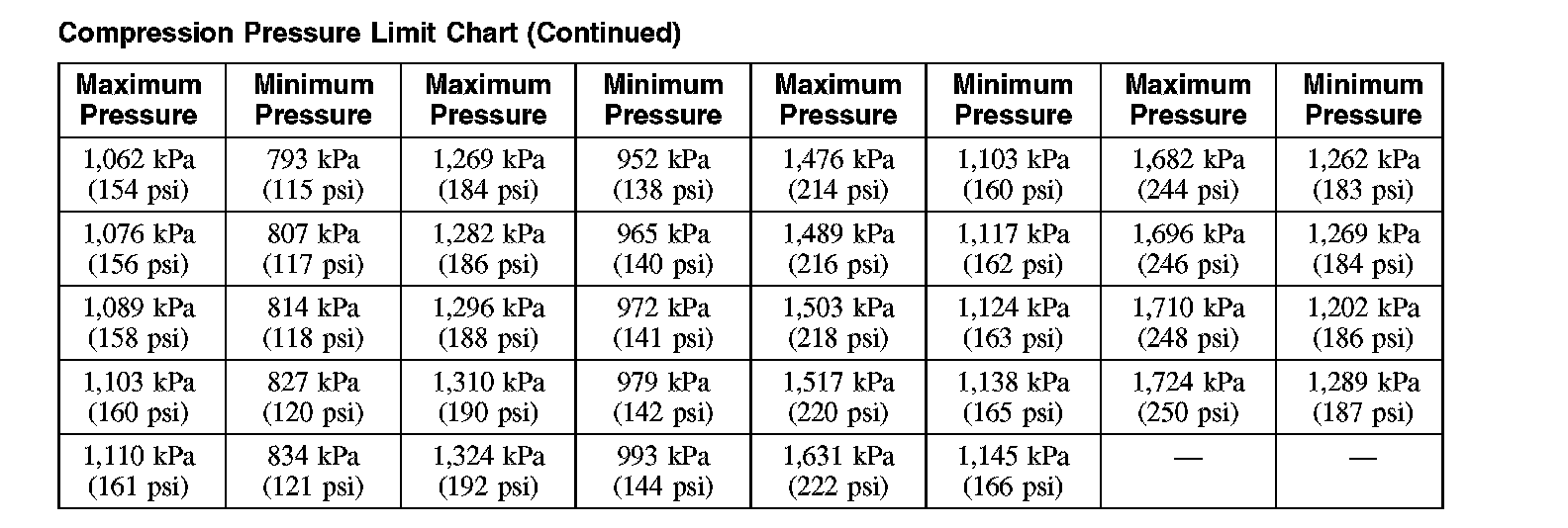 The indicated compression pressures are considered within specification if the lowest reading cylinder is at least 75% of the highest reading.