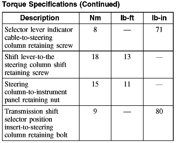 Torque Specifications