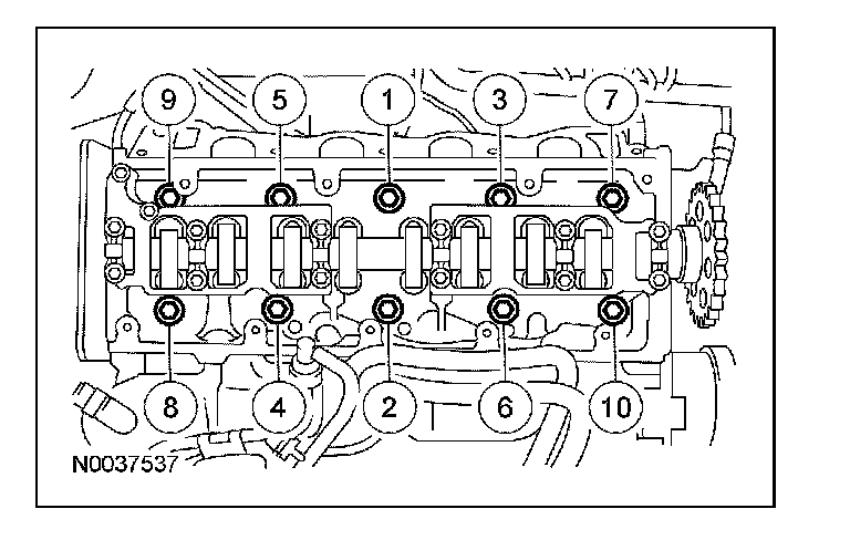 Camshaft Bearing Cap Bolts 10 Nm (89 lb-in).