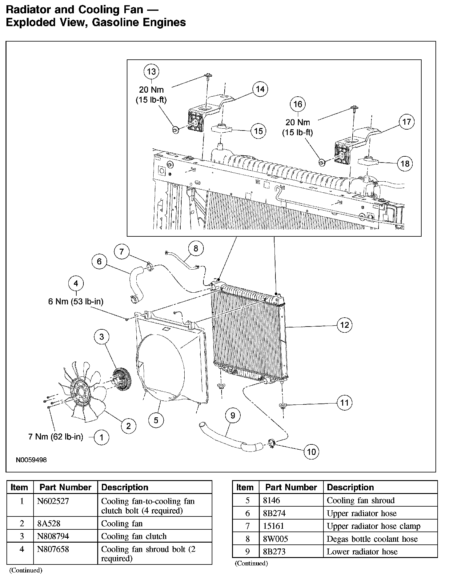 Radiator and Cooling Fan - Exploded View, Gasoline Engines (Part 2):
