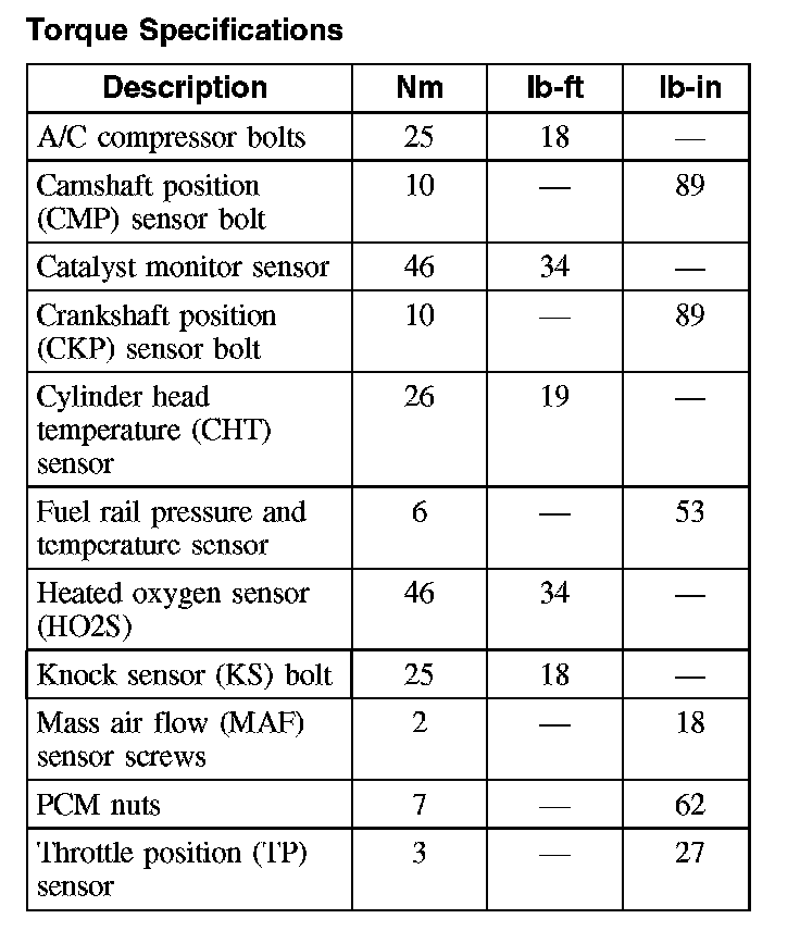 Torque Specifications: