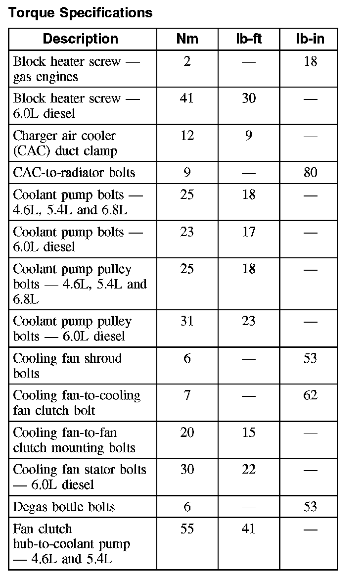 Torque Specifications