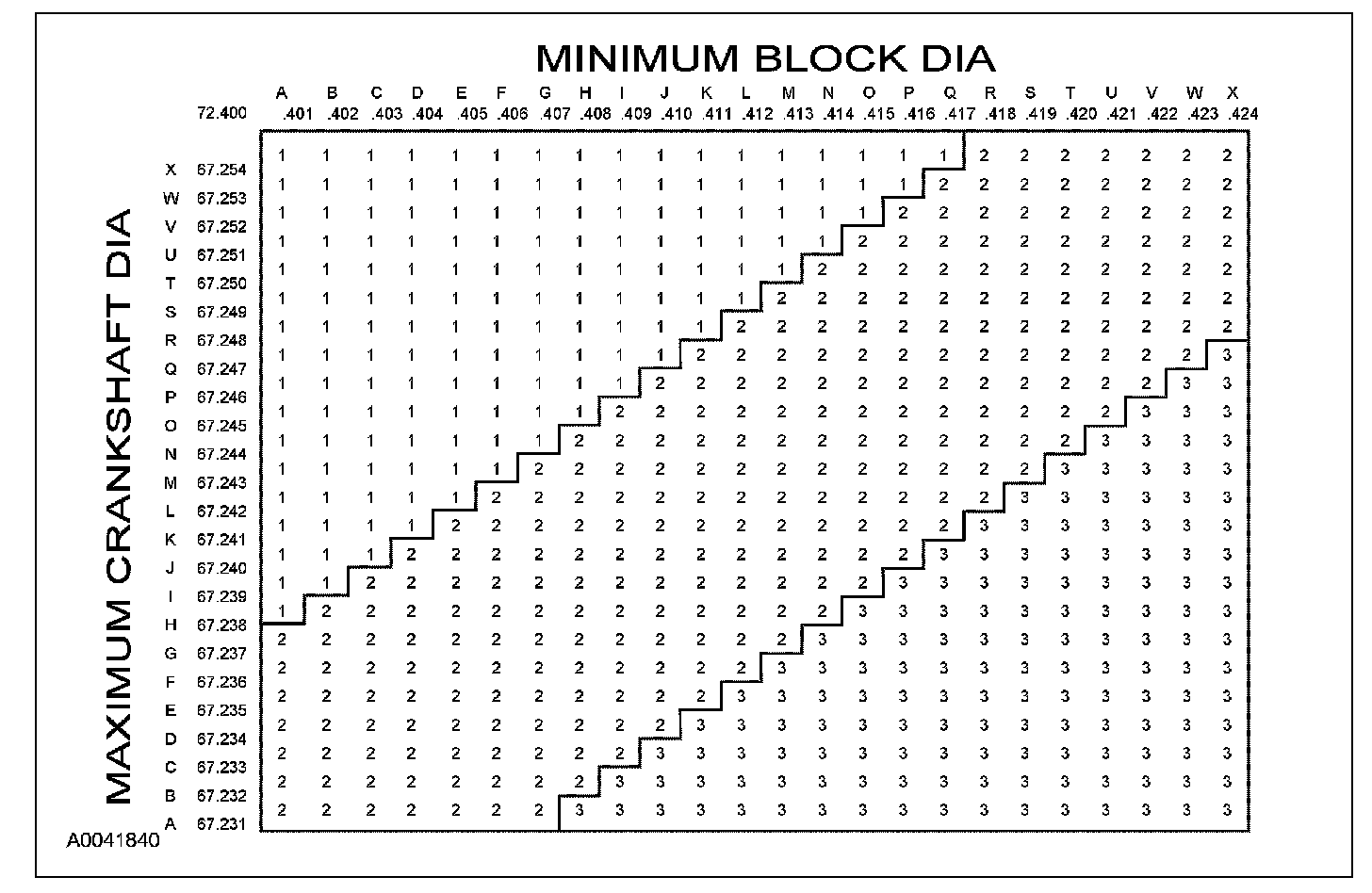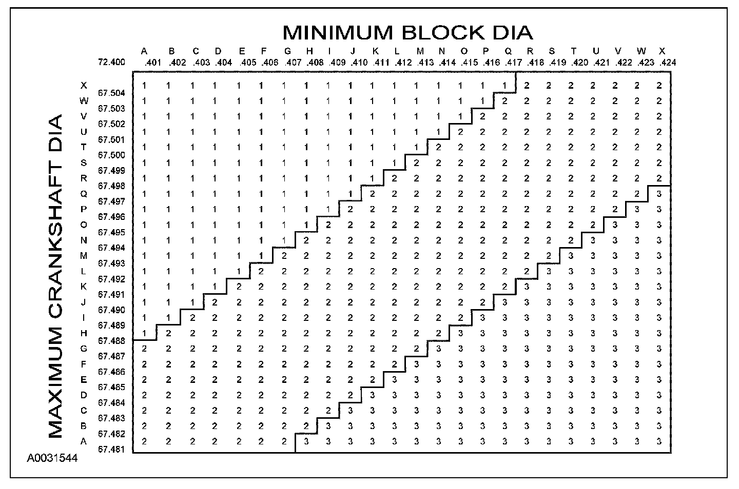 Main bearing journal diameter 67.482-67.504 mm (2.6568-2.6576 in)