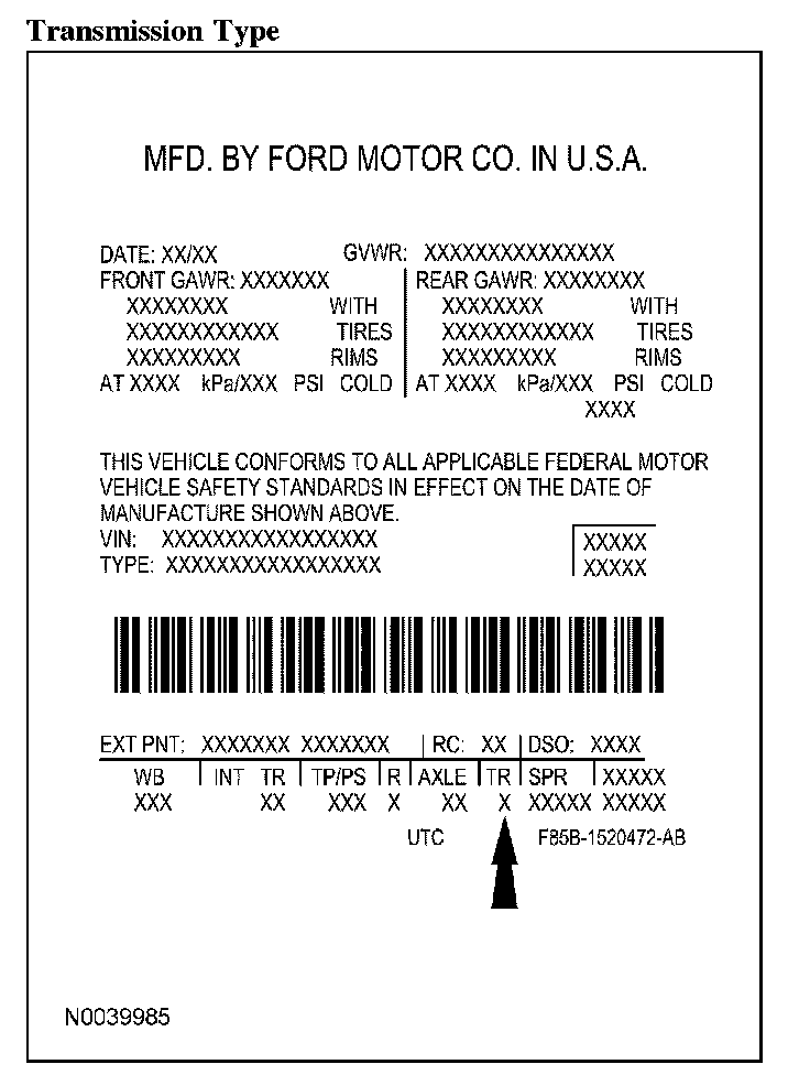 Powertrain calibration information is printed in the lower right corner of the VC label. Only base calibration information is printed. Revision levels will not appear, however, they can be found in OASIS.
