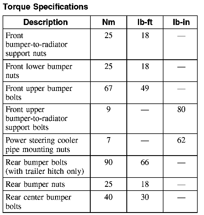 Torque Specifications:
