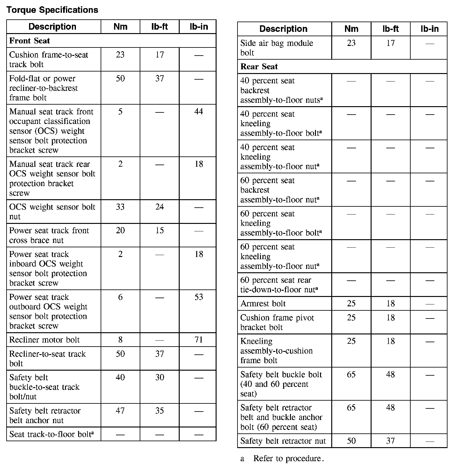 Torque Specifications: