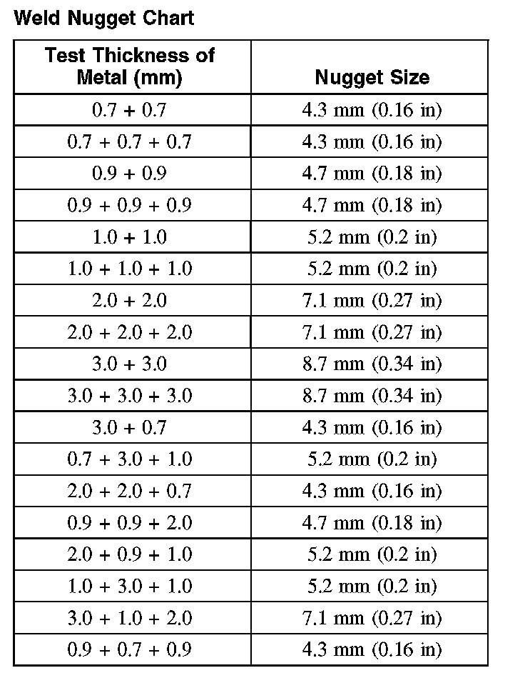 Weld Nugget Chart: