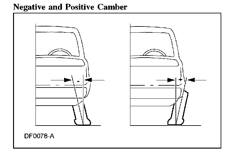 Wheel Alignment AnglesNOTE: When making rear alignment adjustments, it is important to know that when adjustments are made to the rear toe, the rear camber will also be adjusted (in the same direction as the toe adjustment). When making adjustments to the rear camber, the rear toe will also be adjusted (in the opposite direction of the camber adjustment). It will be necessary to check the rear camber whenever rear toe adjustments are made and to check the rear toe whenever rear camber adjustments are made.
