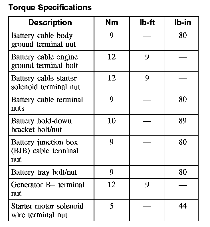 Torque Specifications: