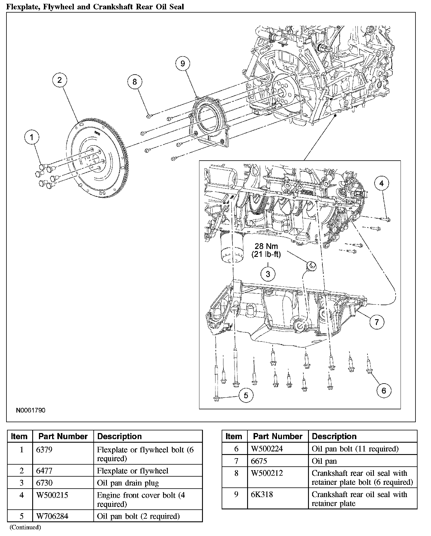 Flexplate, Flywheel and Crankshaft Rear Oil Seal: