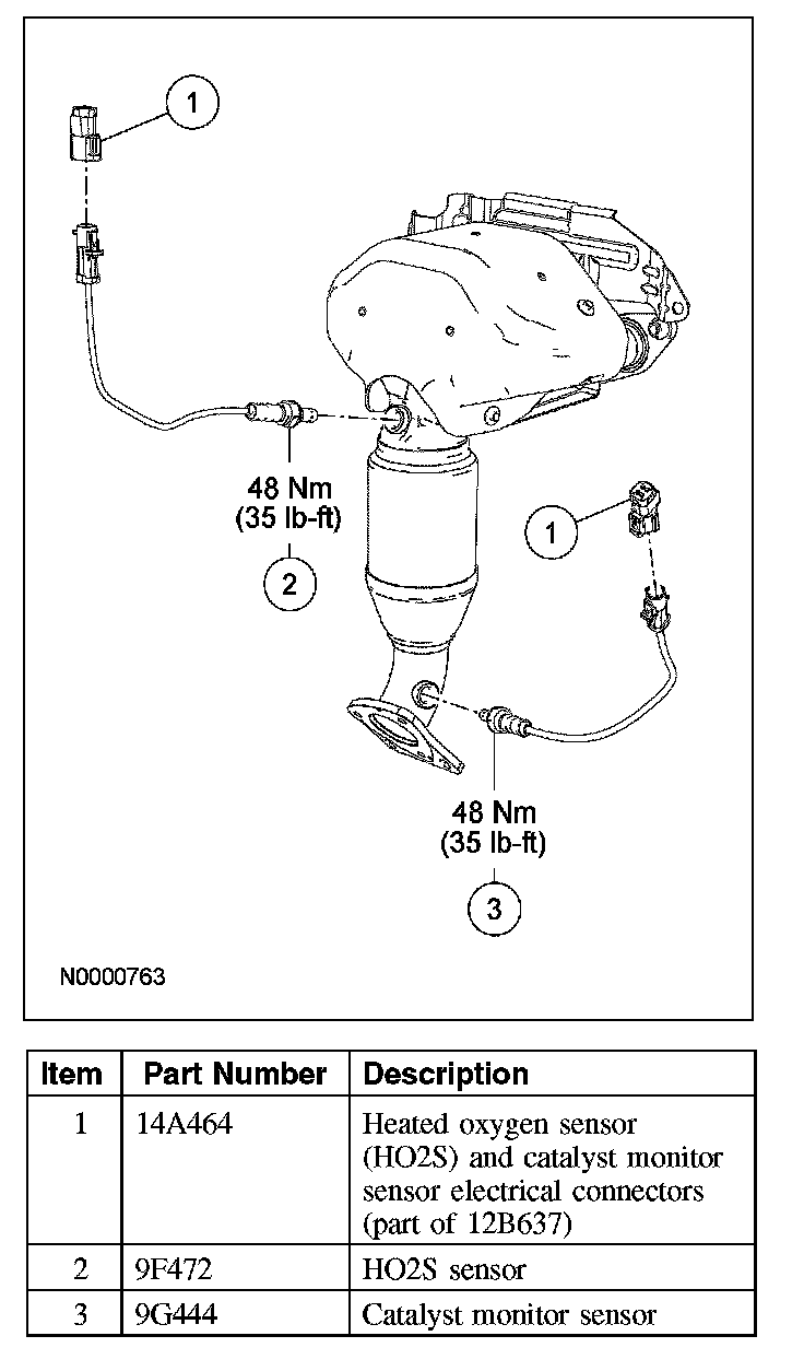 4. NOTE: Apply a light coat of anti-seize lubricant to the threads of the catalyst monitor sensor.