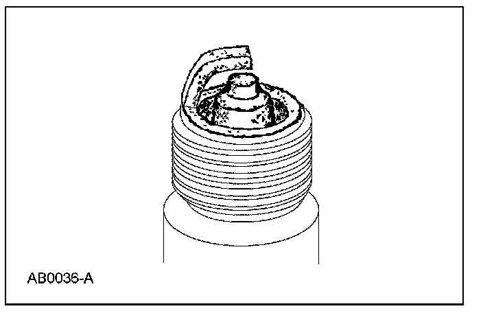 ^ Check for wet, black deposits on the insulator shell bore electrodes, caused by excessive oil entering the combustion chamber through worn rings and pistons, excessive valve-to-guide clearance or worn or loose bearings.