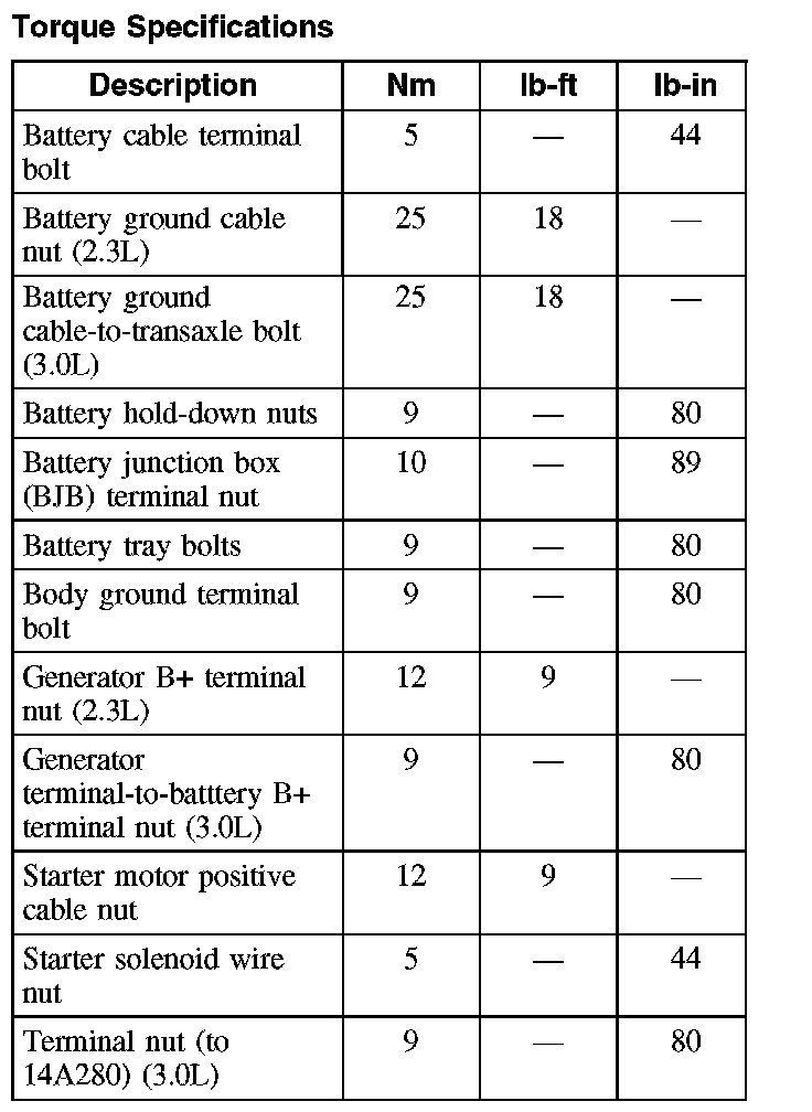 Torque Specifications: