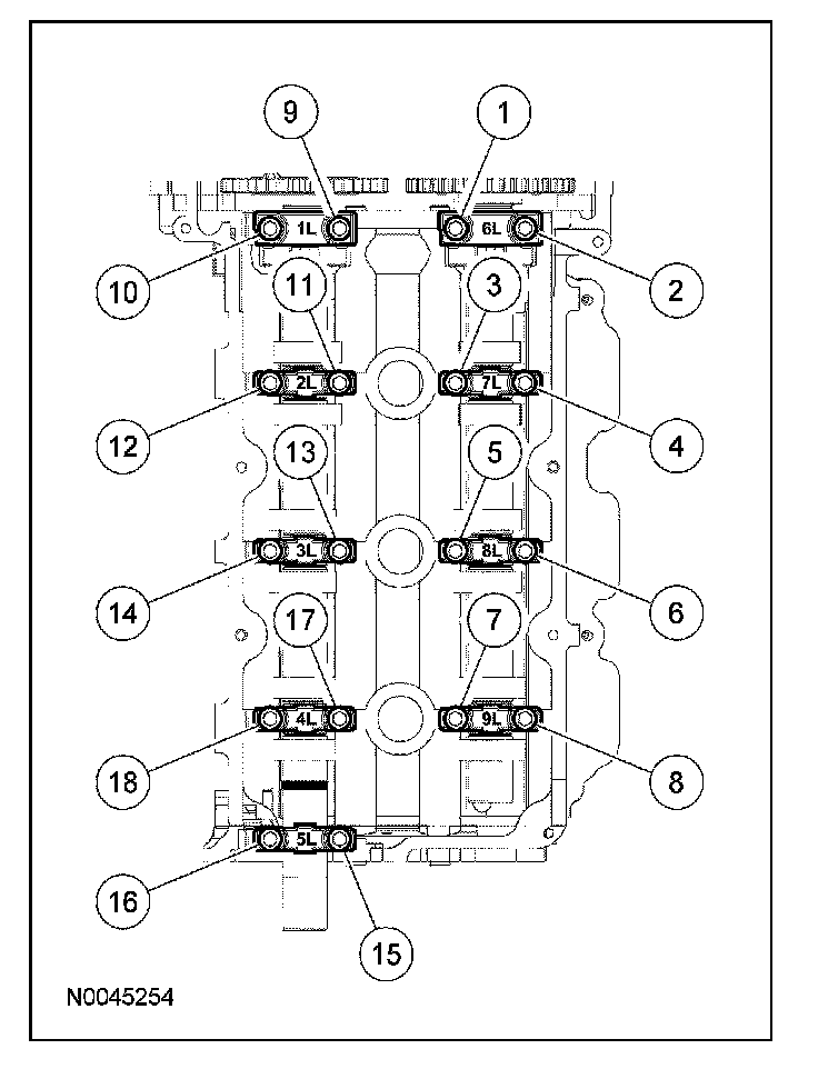 Camshaft Bearing Cap Bolts 10 Nm (89 lb-in).
