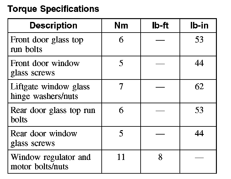 Torque Specifications:
