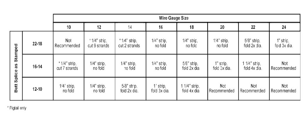 Recommended splicing method - Crimp (For 10-22 AWG Diameter Wire to Like Wire Diameter)