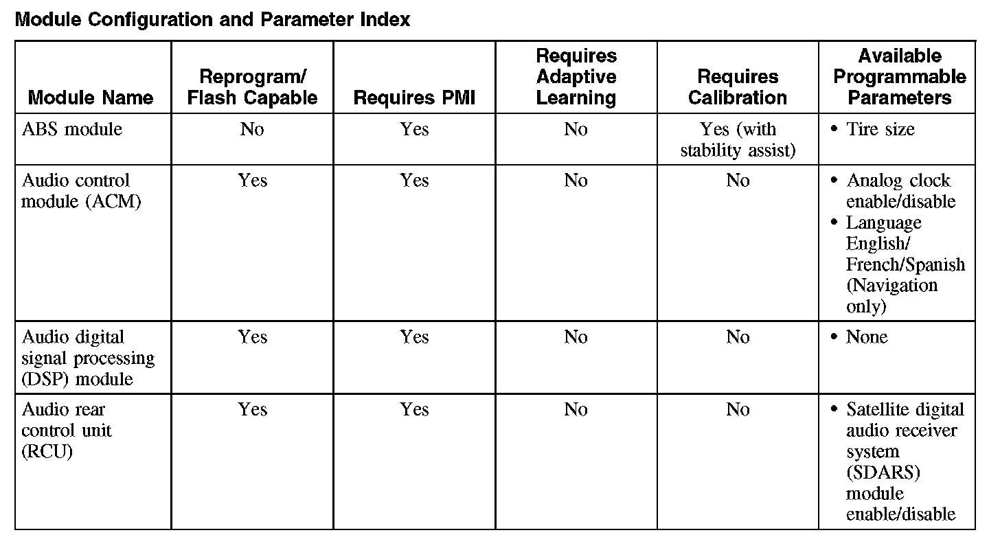 Programmable parameters are customer preference items that may be modified by the dealer via scan tool or in some cases modified by the customer following a procedure listed in the vehicle Owner's Literature. While many configuration options may exist for a module, only a few of these options are programmable parameters.