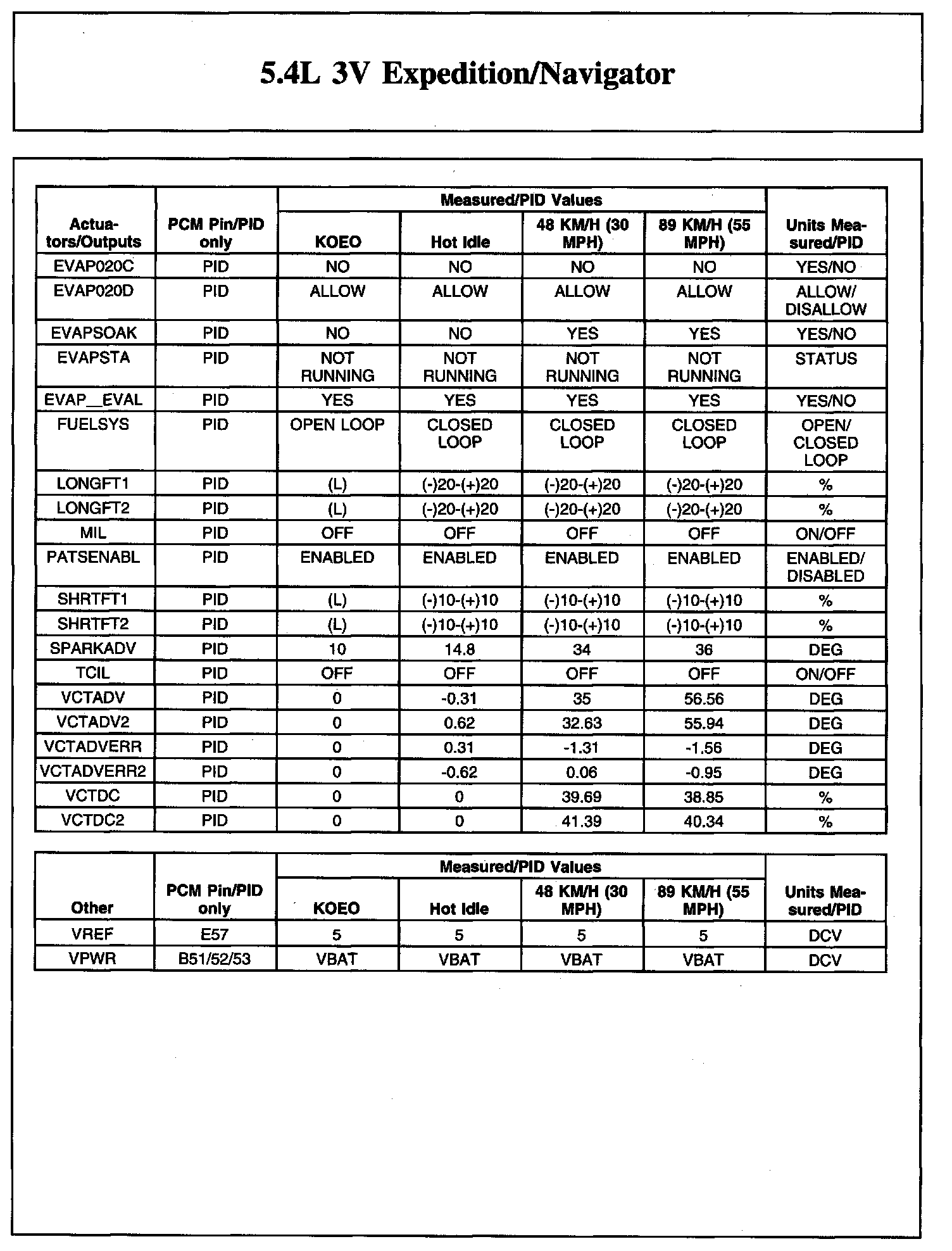 Home >> Ford >> 2008 >> Expedition 2WD V8-5.4L >> Repair and Diagnosis >> Powertrain Management >> Computers and Control Systems >> Testing and Inspection >> Scan Tool Testing and Procedures >> Typical Diagnostic Reference Values