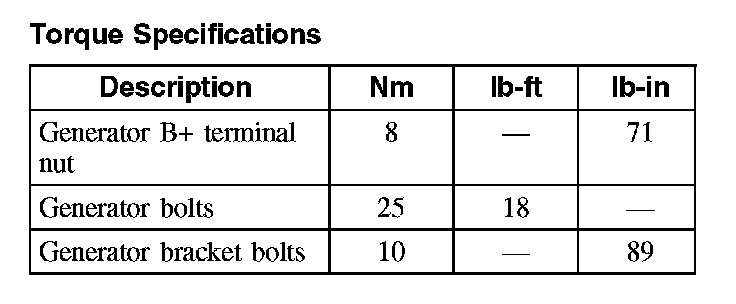 Torque Specifications:
