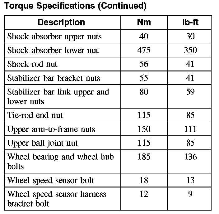 Torque Specifications