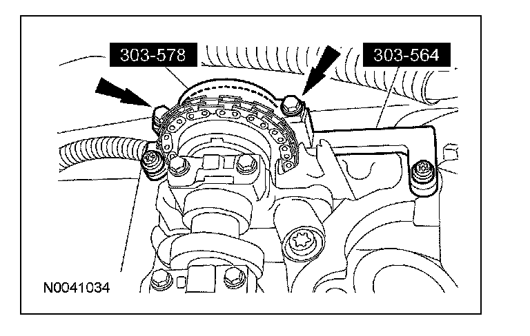 NOTE: The special tool must be installed on the damper and should contact the engine block, this positions the engine at TDC.