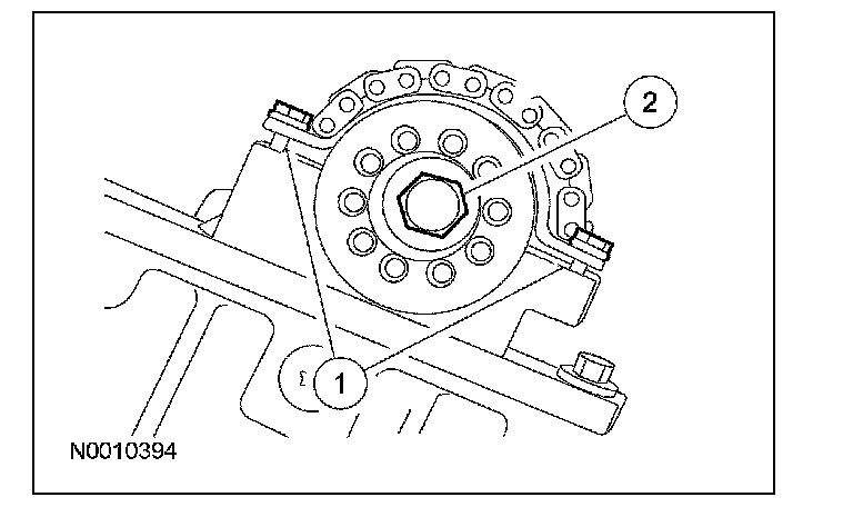 9. NOTE: The RH camshaft sprocket bolt is a LH-threaded bolt.