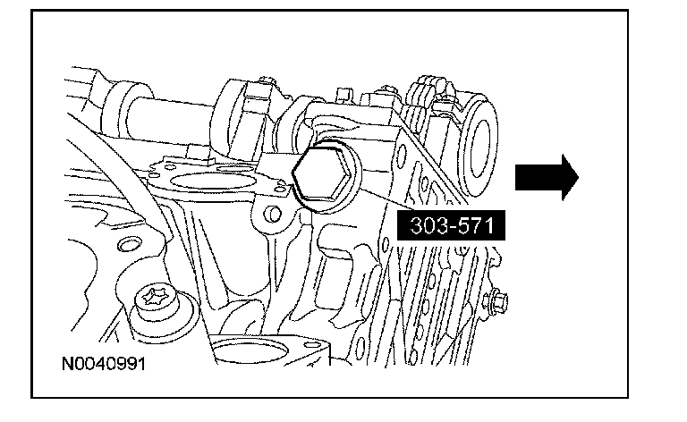 2 Using the special tool with the Camshaft Sprocket Nut Socket 303-565, tighten the camshaft bolt to 61 Nm (45 lb-ft).