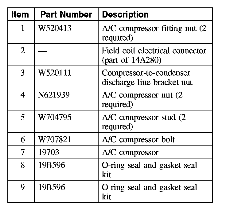 - If installing a new A/C compressor, the A/C clutch disc and hub, A/C compressor pulley and A/C clutch field coil must be inspected and transferred from the old unit to the new unit if suitable for reuse.