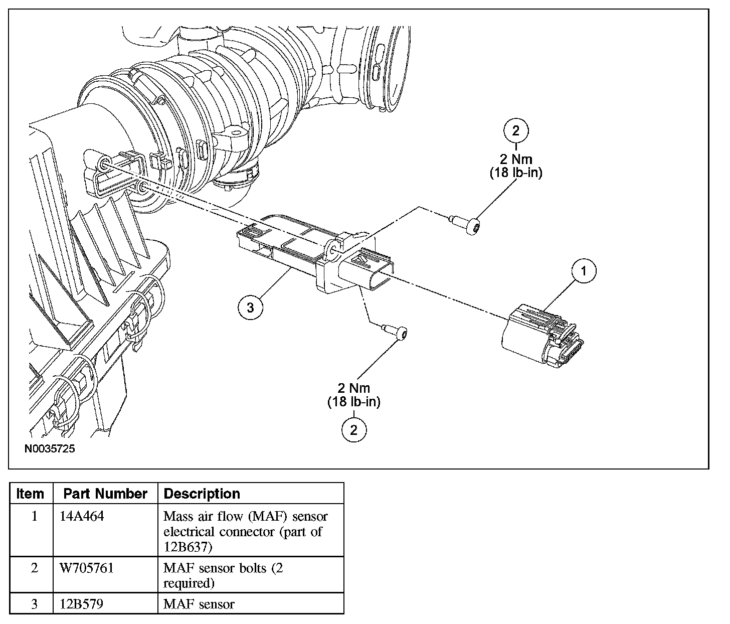 1. Disconnect the mass air flow (MAF) sensor electrical connector.