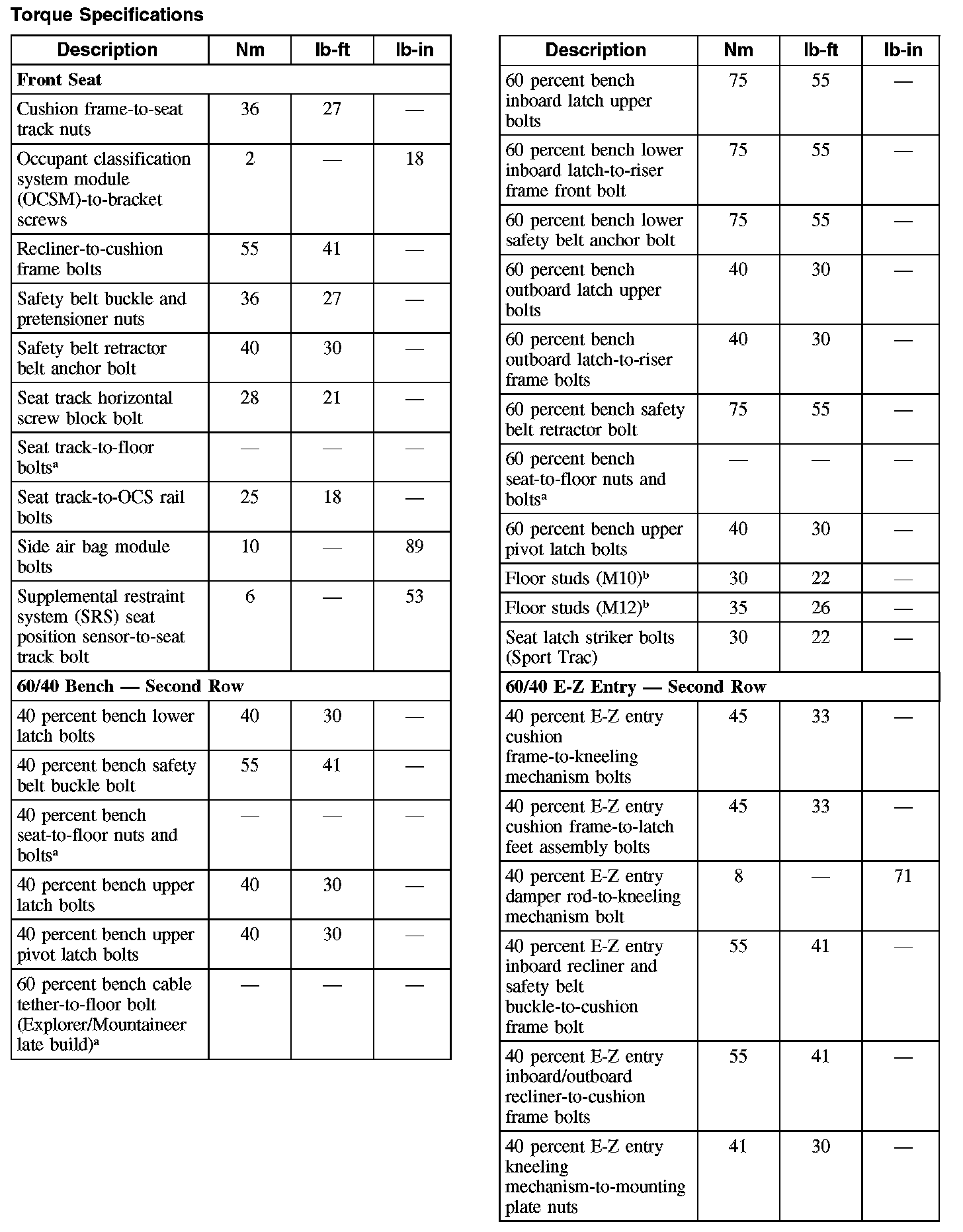 Torque Specifications (Part 2):