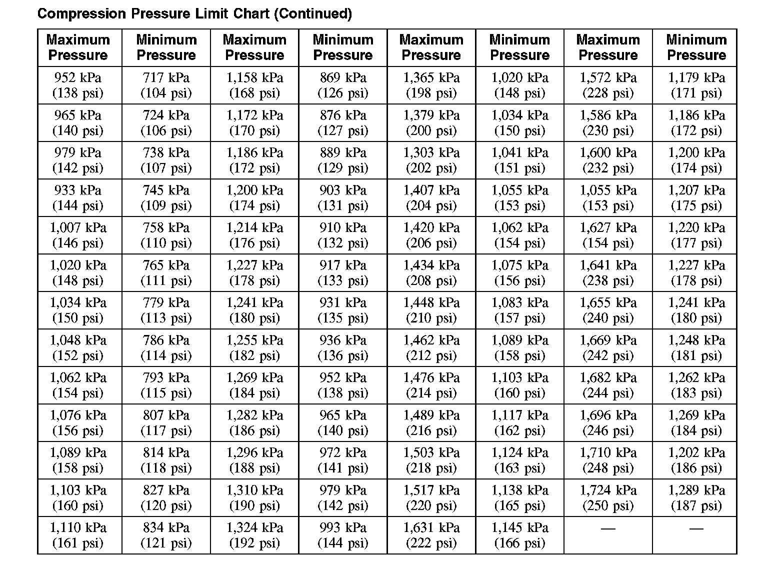 The indicated compression pressures are considered within specification if the lowest reading cylinder is at least 75% of the highest reading.