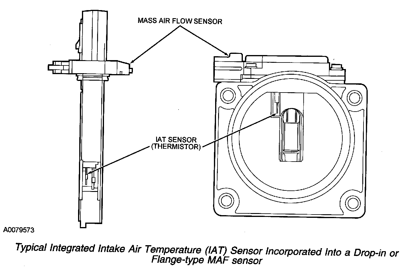 Currently there are 2 design types of IAT sensors used, a stand-alone/non-integrated type and a integrated type. Both types function the same, however the integrated type is incorporated into the mass air flow (MAF) sensor instead of being a stand alone sensor.