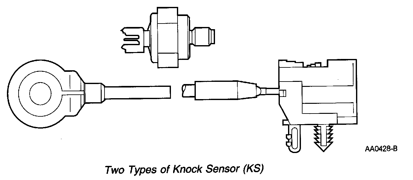 The KS is a tuned accelerometer on the engine which converts engine vibration to an electrical signal. The PCM uses this signal to determine the presence of engine knock and to retard spark timing.