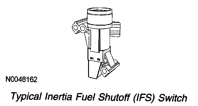 The IFS switch is used in conjunction with the electric fuel pump. The purpose of the IFS switch is to shutoff the fuel pump if a collision occurs. It consists of a steel ball held in place by a magnet. When a sharp impact occurs, the ball breaks loose from the magnet, rolls up a conical ramp and strikes a target plate which opens the electrical contacts of the switch and shuts off the electric fuel pump. Once the switch is open, it must be manually reset before restarting the vehicle. Refer to the Owner's Literature, Roadside Emergencies for the location of the IFS switch.