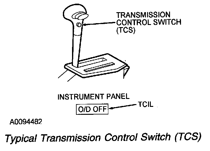 The TCS signals the PCM with VPWR whenever the TCS is pressed. On vehicles with this feature, the transmission control indicator lamp (TCIL) illuminates when the TCS is cycled to disengage overdrive.