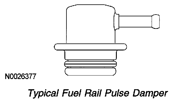 The fuel rail pulse damper is located on the fuel rail and reduces the fuel system noise caused by the pulsing of the fuel injectors. The vacuum port located on the damper is connected to manifold vacuum to avoid fuel spillage if the pulse damper diaphragm ruptures. The fuel rail pulse damper should not be confused with a fuel pressure regulator; it does not regulate the fuel rail pressure.